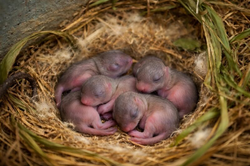 Crouching down, I leaned closer. At first, I thought it was just a forgotten piece of decoration or some random discarded debris. But then a soft, rhythmic sound reached my ears, almost like a faint heartbeat. The closer I looked, the more I realized it wasn’t trash at all. Nestled inside the tiny mound of straw were five tiny, hairless creatures, curled up together, trembling gently.